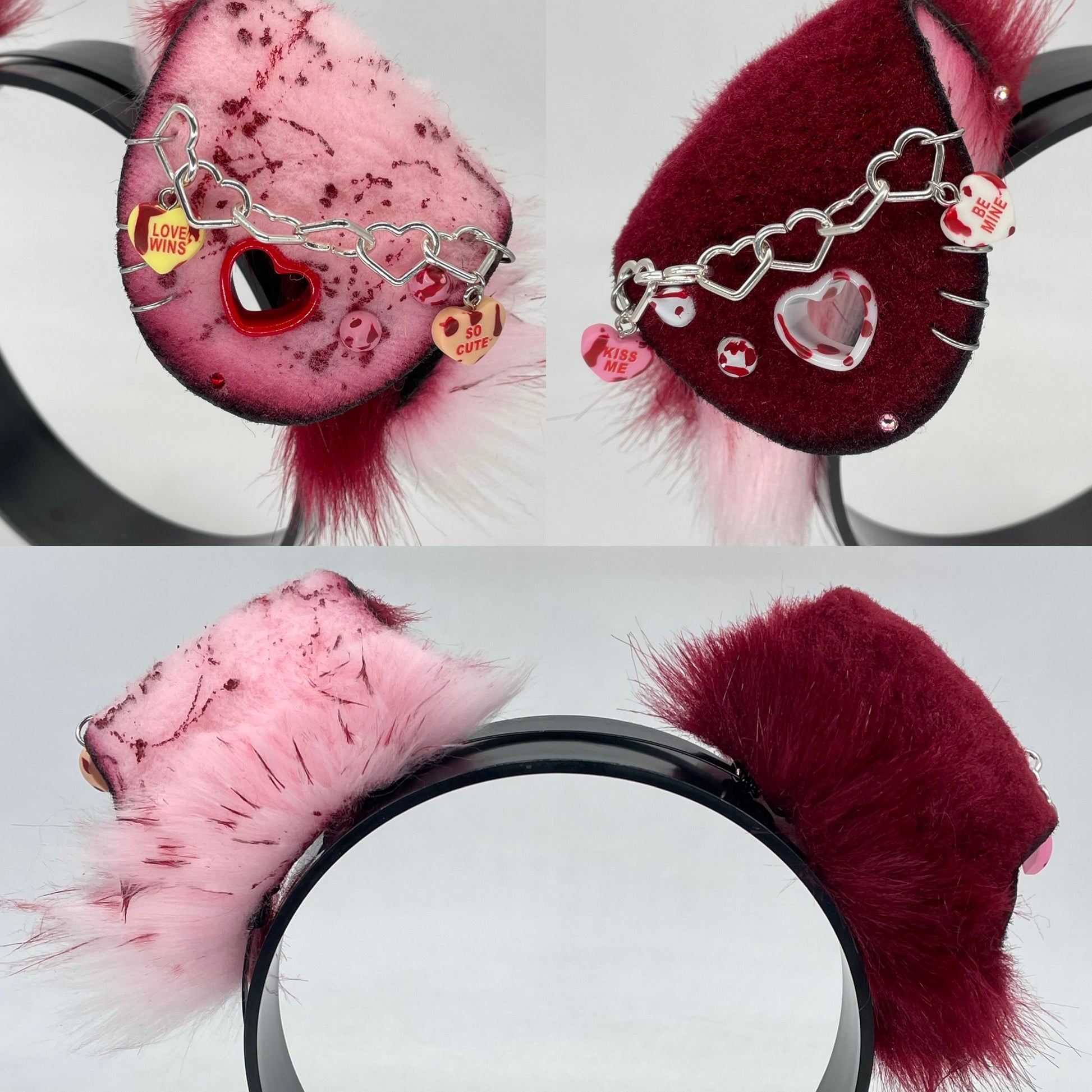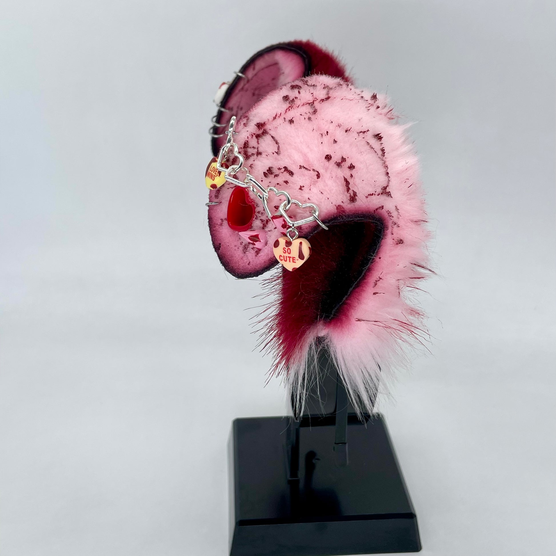 Ears should be handled with care and stored out of direct sunlight. They are fully wired making them posable and slideable along the headband. Fur tufts should be brushed gently (comb is included with order).