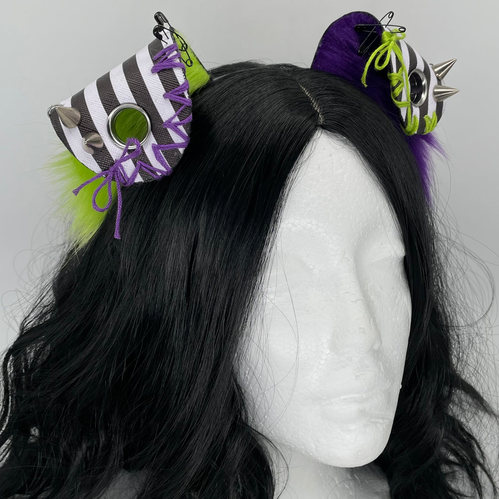Leather & Laced- Beetlejuice Punk Pup Ears (Pleather & Fur)